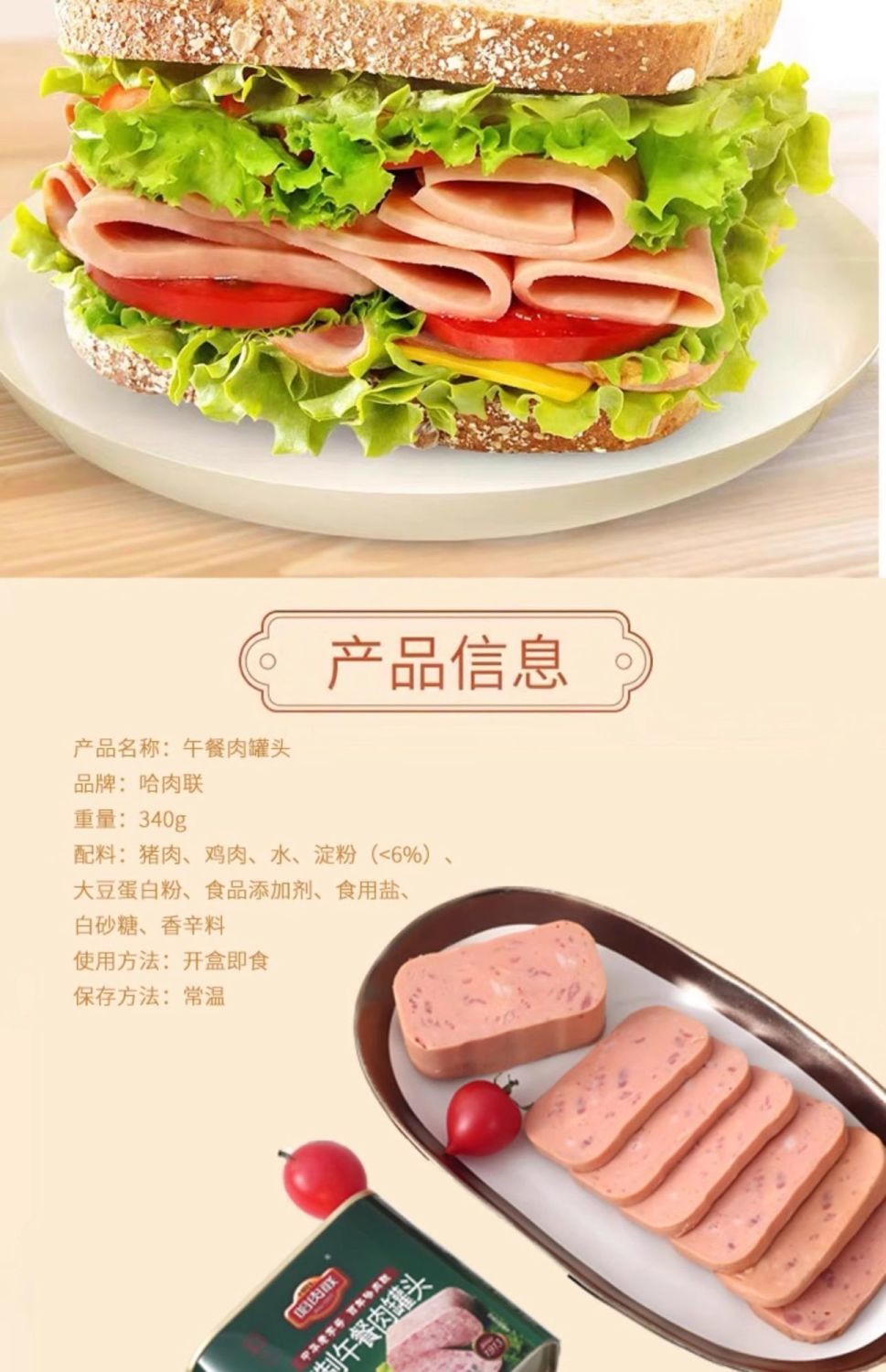 哈肉联精制午餐肉 340克/4盒 食品售出概不退换
